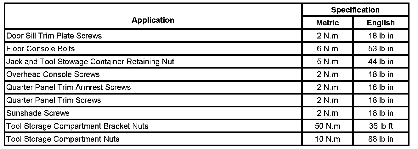 Interior Trim - Fastener Tightening Specifications