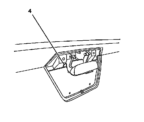 5. Release the left side endgate handle latch rod retainer (4).