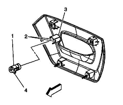 2. Install handle bezel to the endgate. Line up the lock cylinder arm (4) with the opening in the handle.