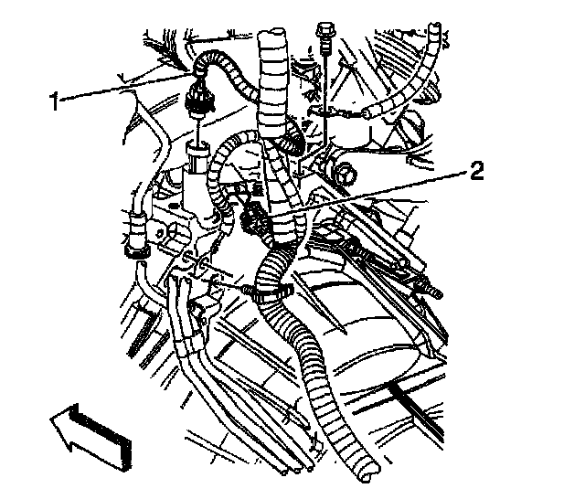 49. Connect the MAP sensor (1) and knock sensor (2) electrical connectors.