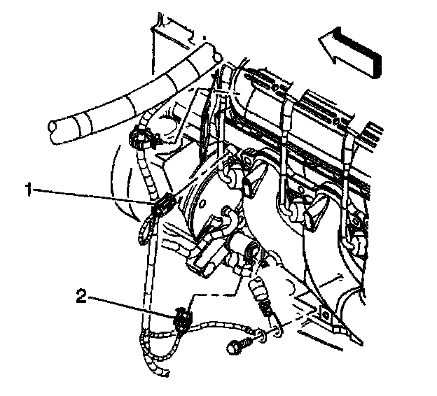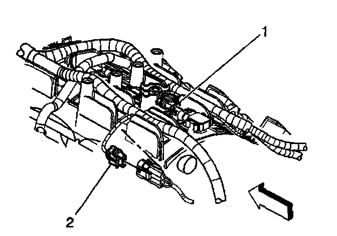 34. Disconnect the manifold absolute pressure (MAP) sensor (1) and knock sensor (2) electrical connectors.
