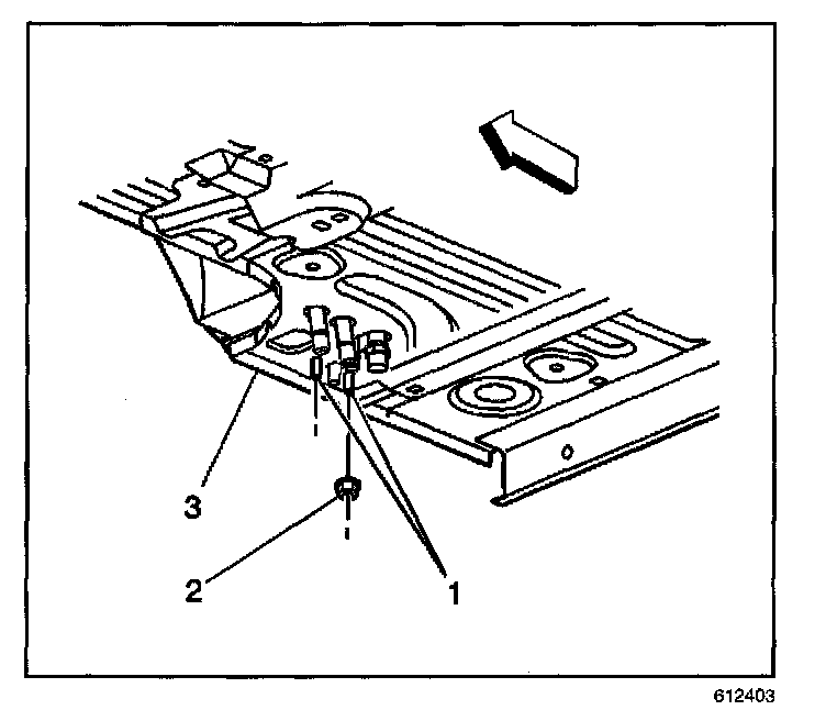 2. Install the two bolts (3) inside the vehicle in order to retain the case to the vehicle.