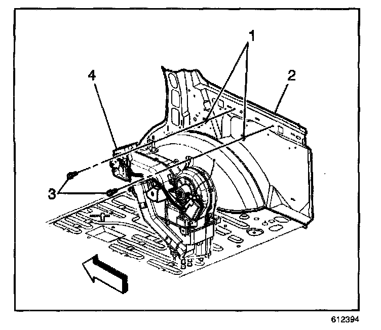 1. Install the auxiliary HVAC module assembly (4) to the vehicle.
