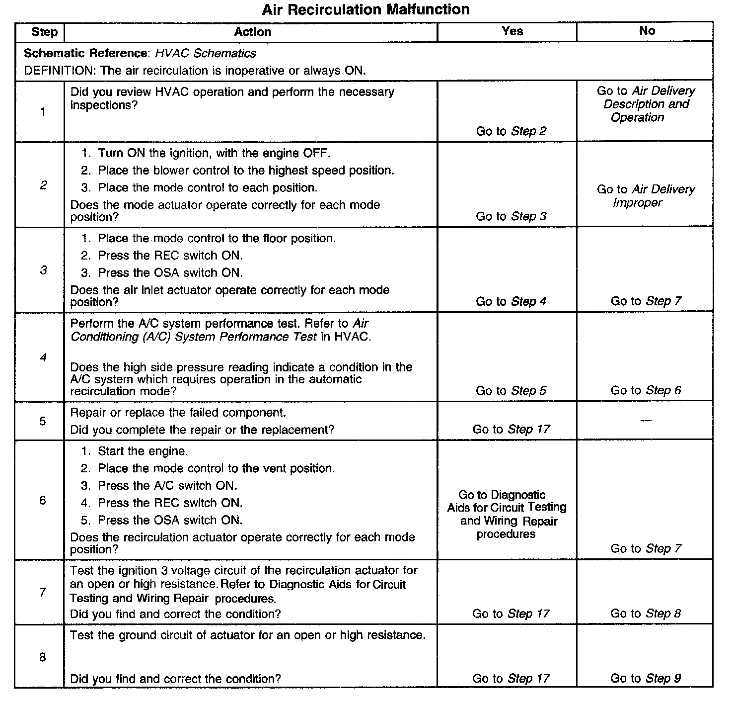 3. This step tests for a inoperative recirculation actuator in one mode positions or in the wrong mode positions.