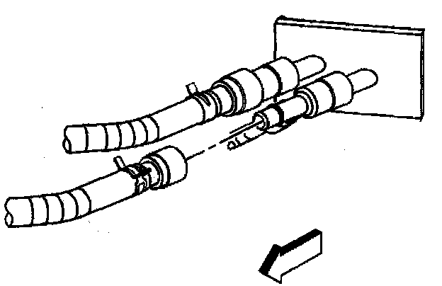 Firmly push the hose onto the heater and blower module pipe until an audible click is heard.