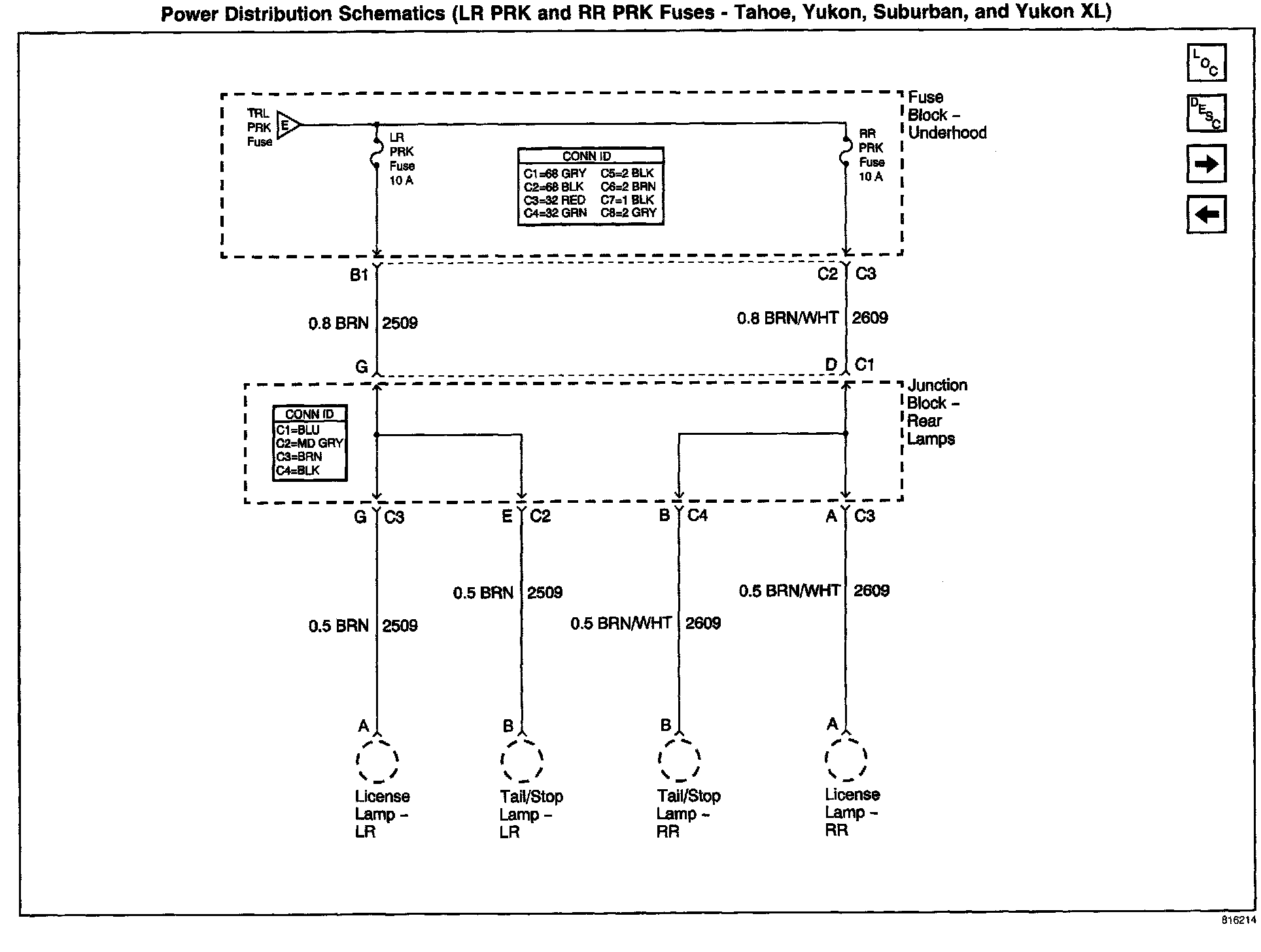 Power Distribution Schematics: LR PRK And RR PRK Fuses - Tahoe, Yukon, Suburban, And Yukon XL: