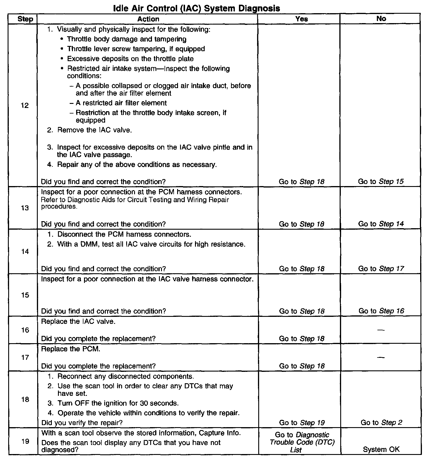 Idle Air Control (IAC) System Diagnosis
