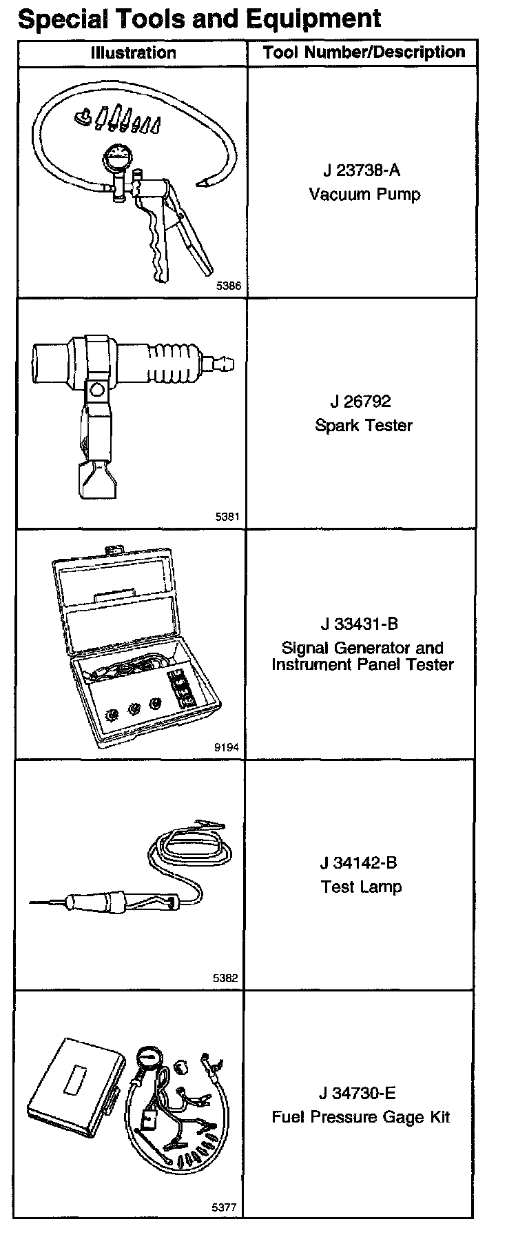 Special Tools And Equipment Part 1: