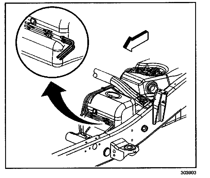 3. Connect the chassis fuel feed and return pipes at the rear fuel feed and return pipes.