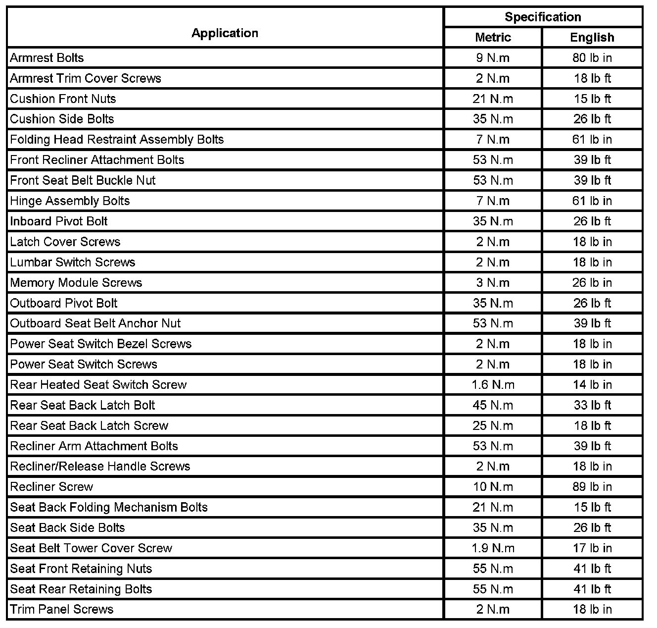 Fastener Tightening Specifications