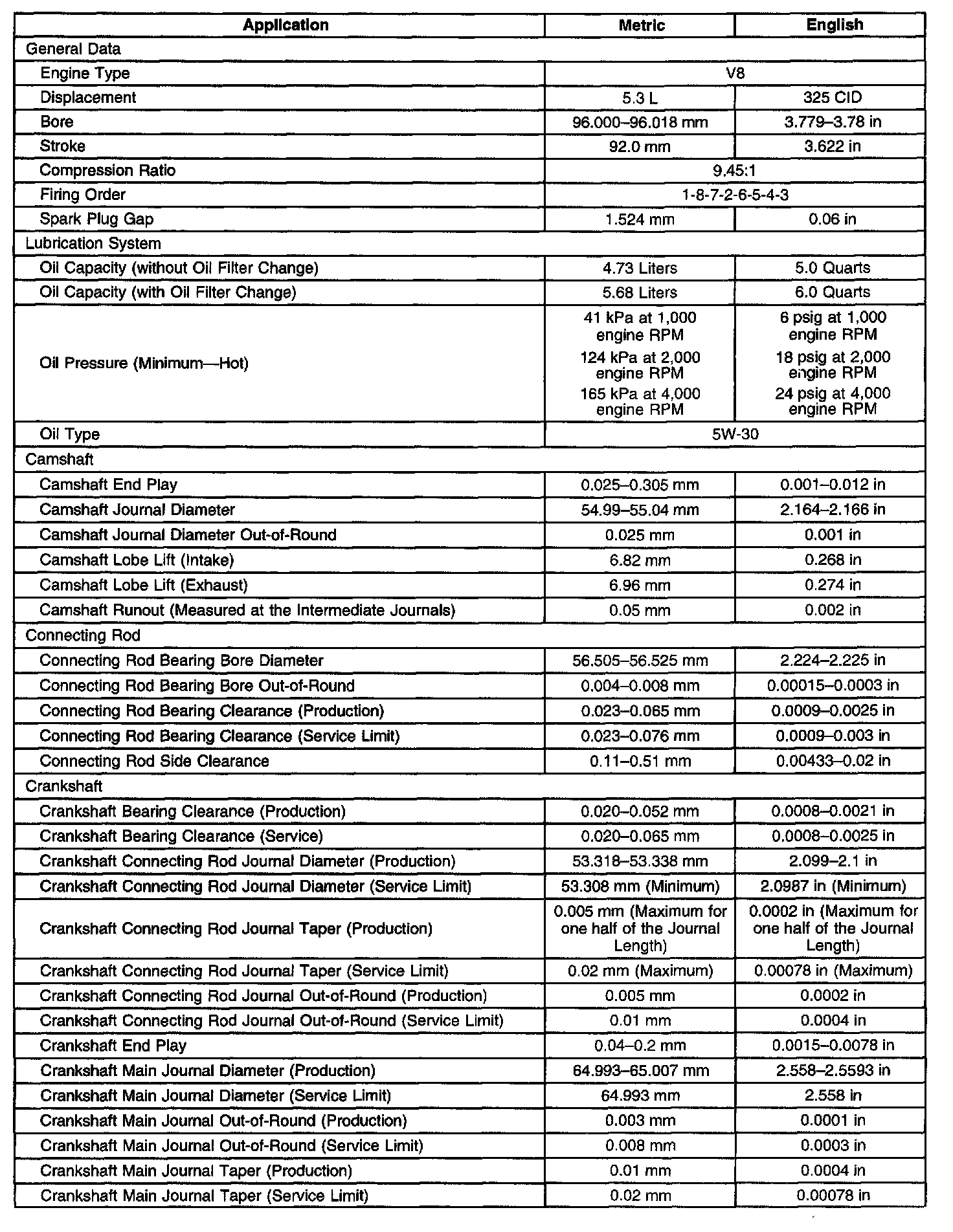 Engine Mechanical Specifications (LM7 VIN T/L59 VIN Z)