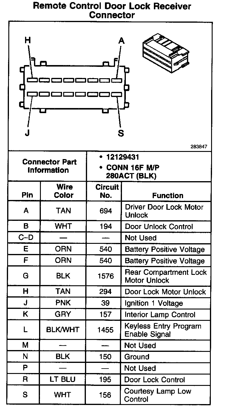 Remote Control Door Lock Receiver Connector:
