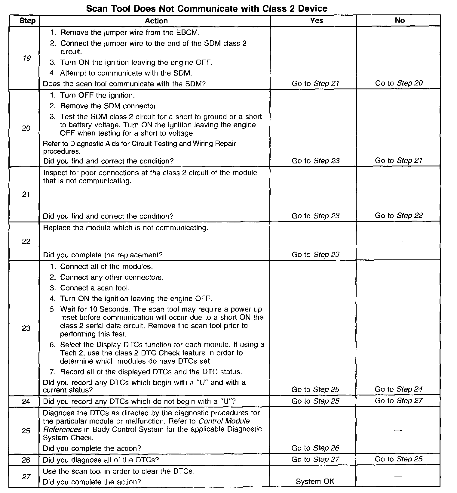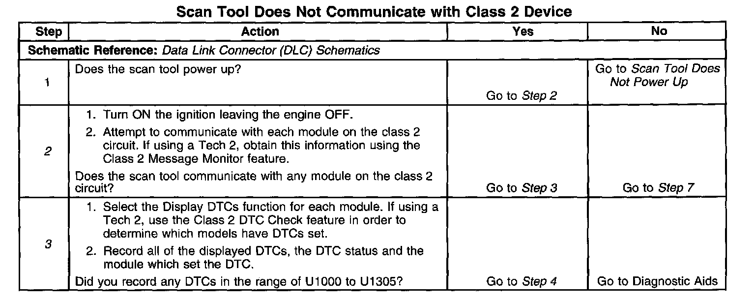 Modules connected to the class 2 serial data circuit monitor for serial data communications during normal vehicle operation. Operating information and commands are exchanged among the modules. Connecting a scan tool to the DLC allows communication with the modules for diagnostic purposes. DTCs may be set due to this symptom and during this diagnostic procedure. Complete the diagnostic procedure in order to ensure all the DTCs are diagnosed and cleared from memory.
