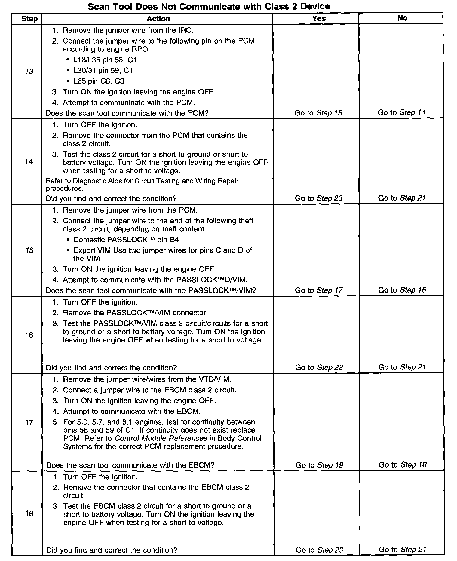 11. The class 2 circuit is shorted to battery positive voltage or ground. The condition may be due to the wiring or due to a malfunction in one of the modules. When testing the wiring for a short, make sure there is not a module connected to the wire being tested. This test isolates the IRC class 2 circuit.