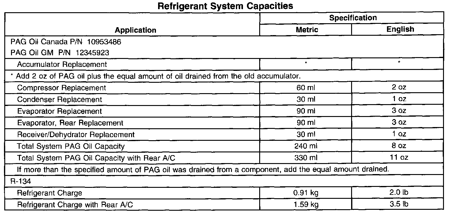 Refrigerant System Capacities - Heating, Ventilation And Air Conditioning: