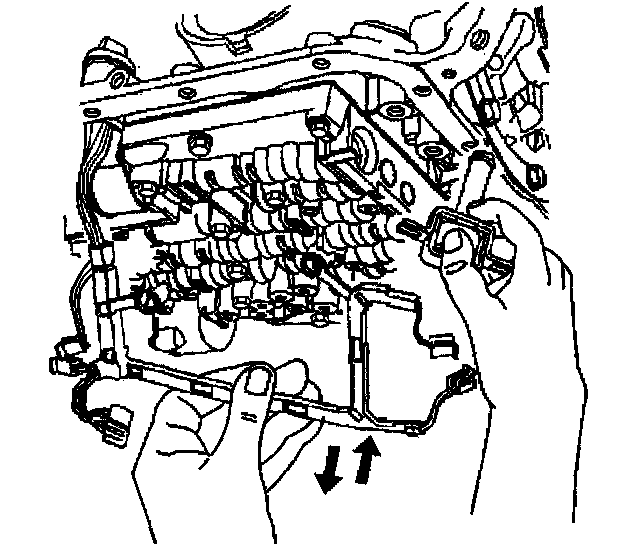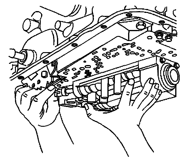 Important: Keep the control valve body level when lowering it from the vehicle. This will prevent the loss of checkballs located in the control valve body passages.