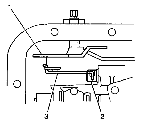 3. Verify that the manual valve link (3) is installed properly to the inside detent lever (1) and the manual valve (2).