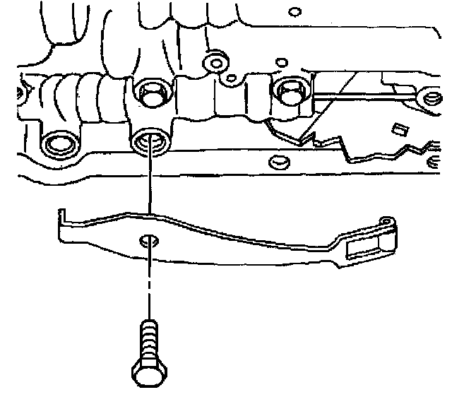 5. Do not install the transmission fluid indicator stop bracket and bolt at this time.