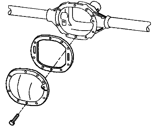 3. Remove the rear axle housing cover and the gasket (8.6 inch axle only).