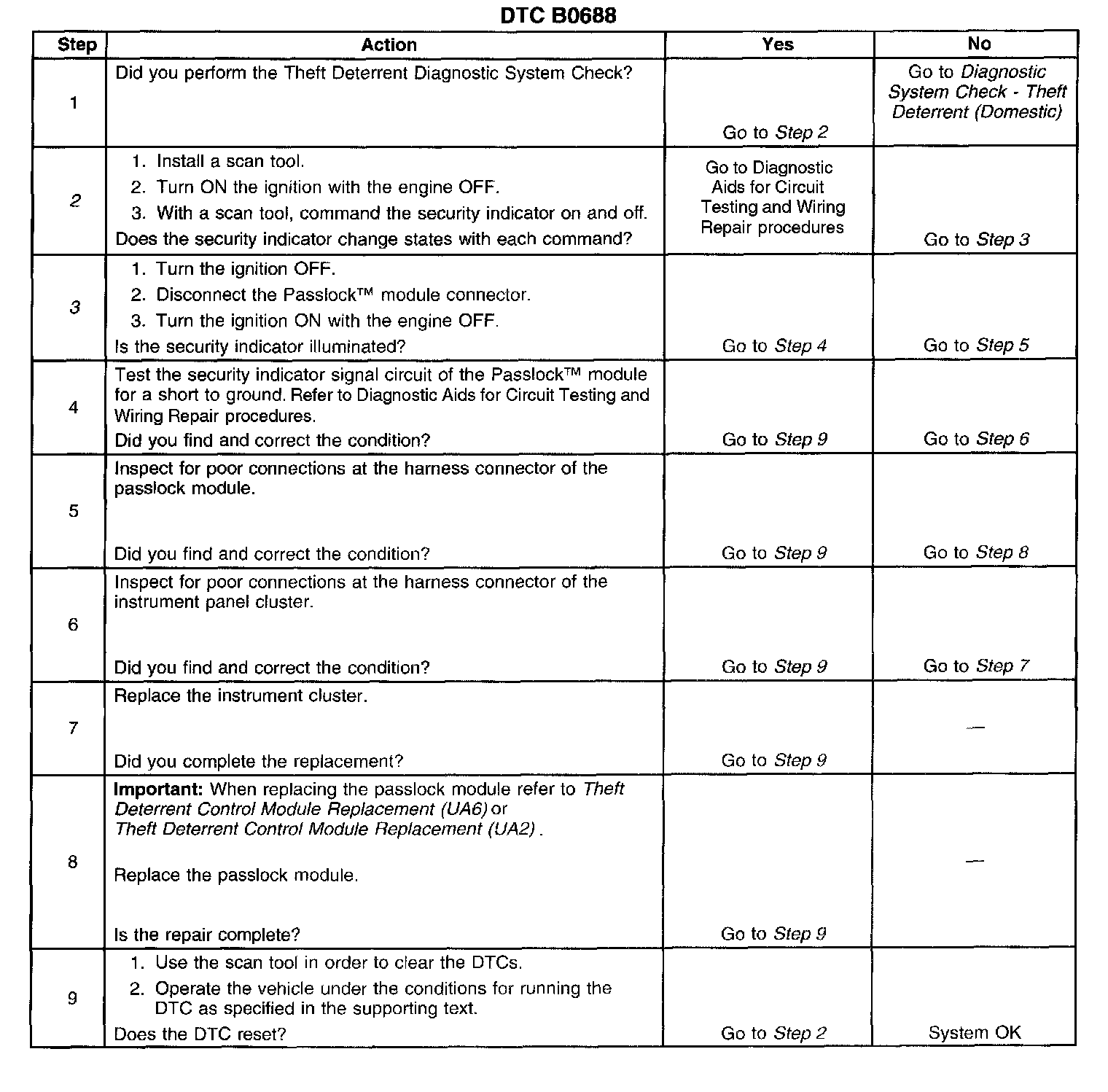^ The Passlock module history DTCs clear after 100 ignition cycles with no current codes active.