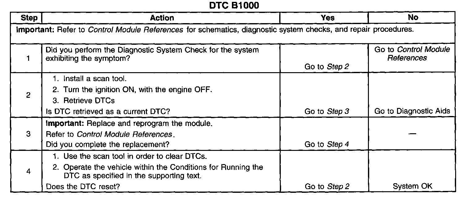 ^ This DTC may be stored as a History DTC with out affecting the operation of the module. If stored only as a History DTC and not retrieved as a current DTC, do not replace the module.