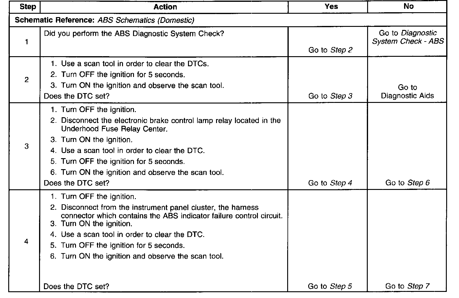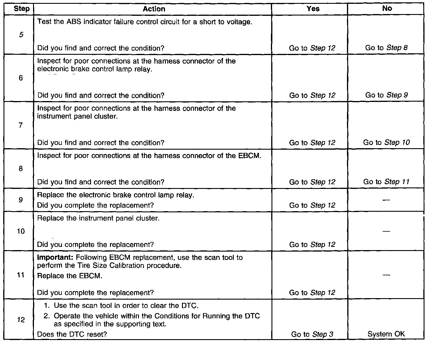 5. Damage may occur to the EBCM, the ABS indicator failure control circuit and the ABS indicator lamp relay if the ABS indicator failure control circuit is shorted to voltage.