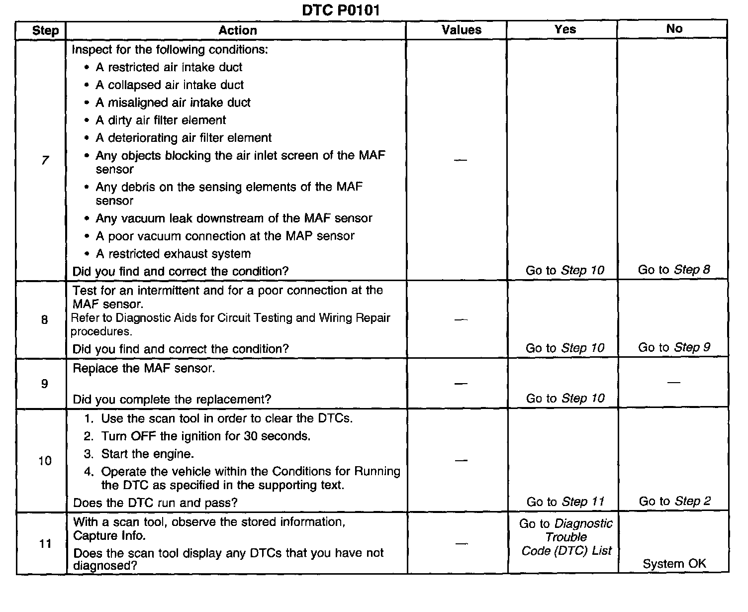 7. This step will determine if any mechanical faults have caused this DTC to set.