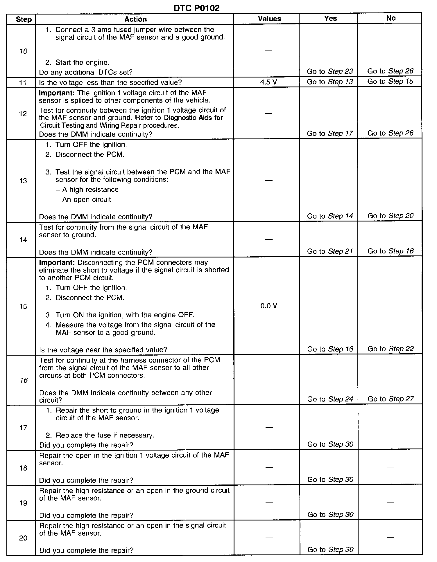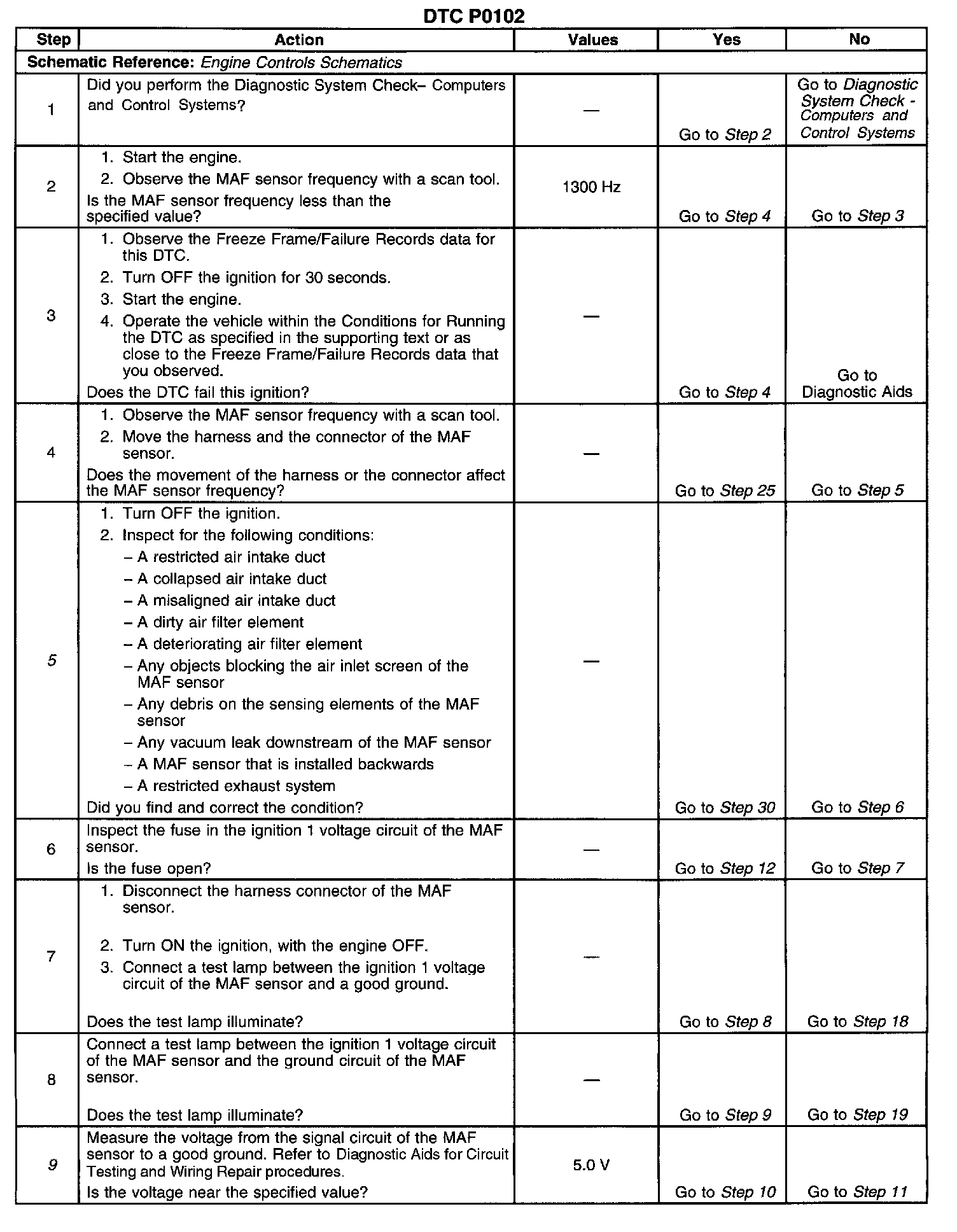 10. This step tests the signal circuit of the MAF sensor for a short to another 5.0 volt reference circuit.