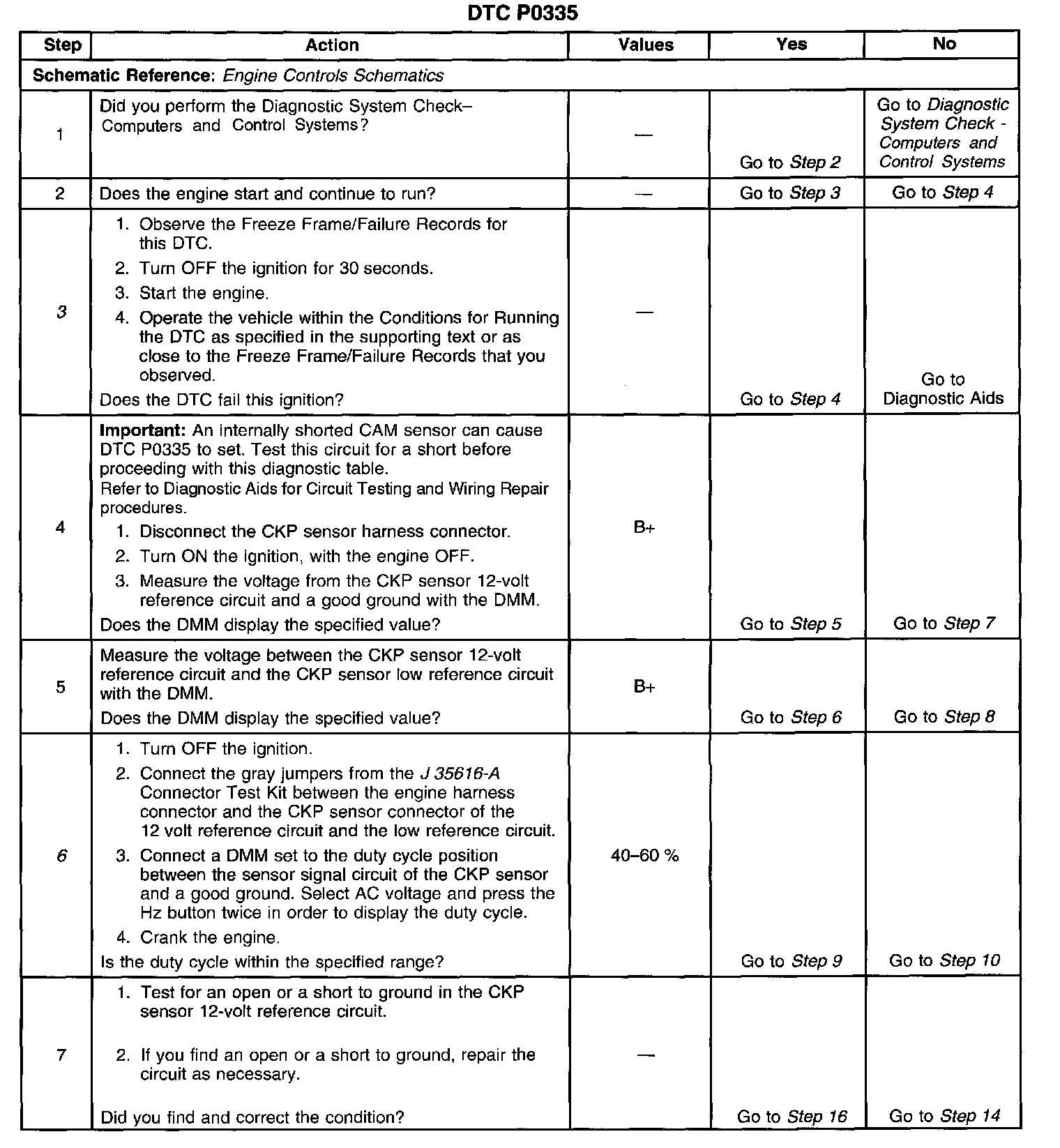 6. This step simulates a CKP sensor signal to the PCM. If the PCM receives the signal, the fuel pump will operate for about two seconds.