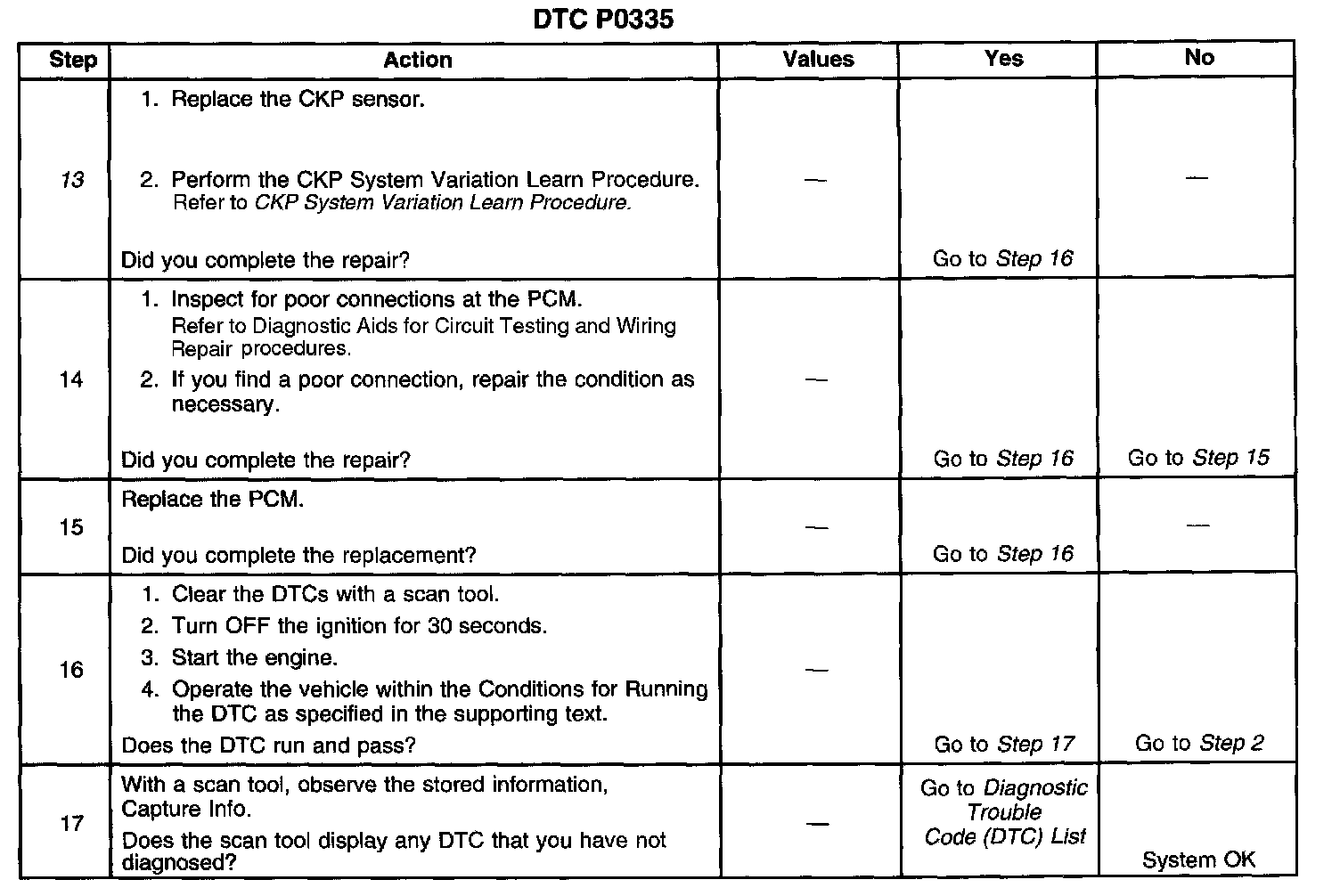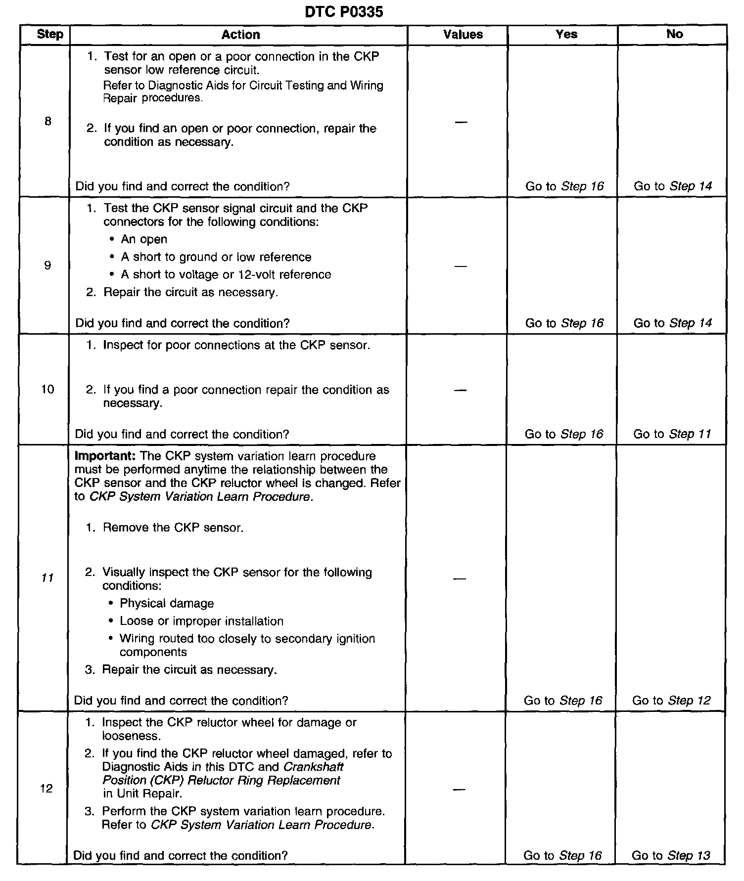 13. The CKP system variation learn procedure must be performed anytime the relationship between the CKP sensor and the CKP reluctor wheel is changed.