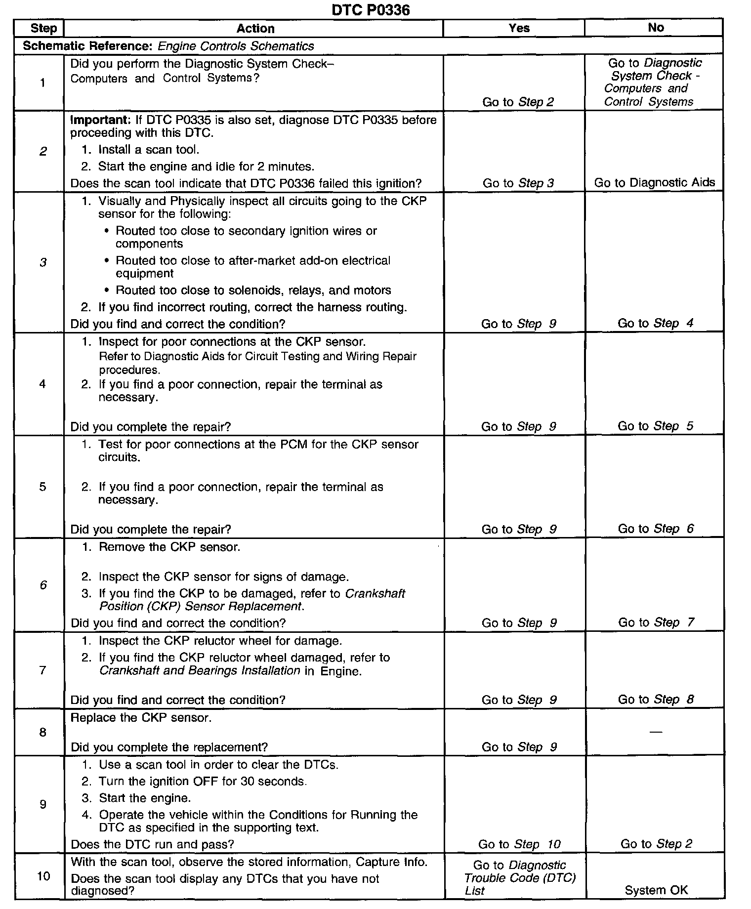 ^ Excess crankshaft end play will cause the CKP sensor reluctor wheel to move out of alignment with the CKP sensor. This could result in any one of the following conditions: