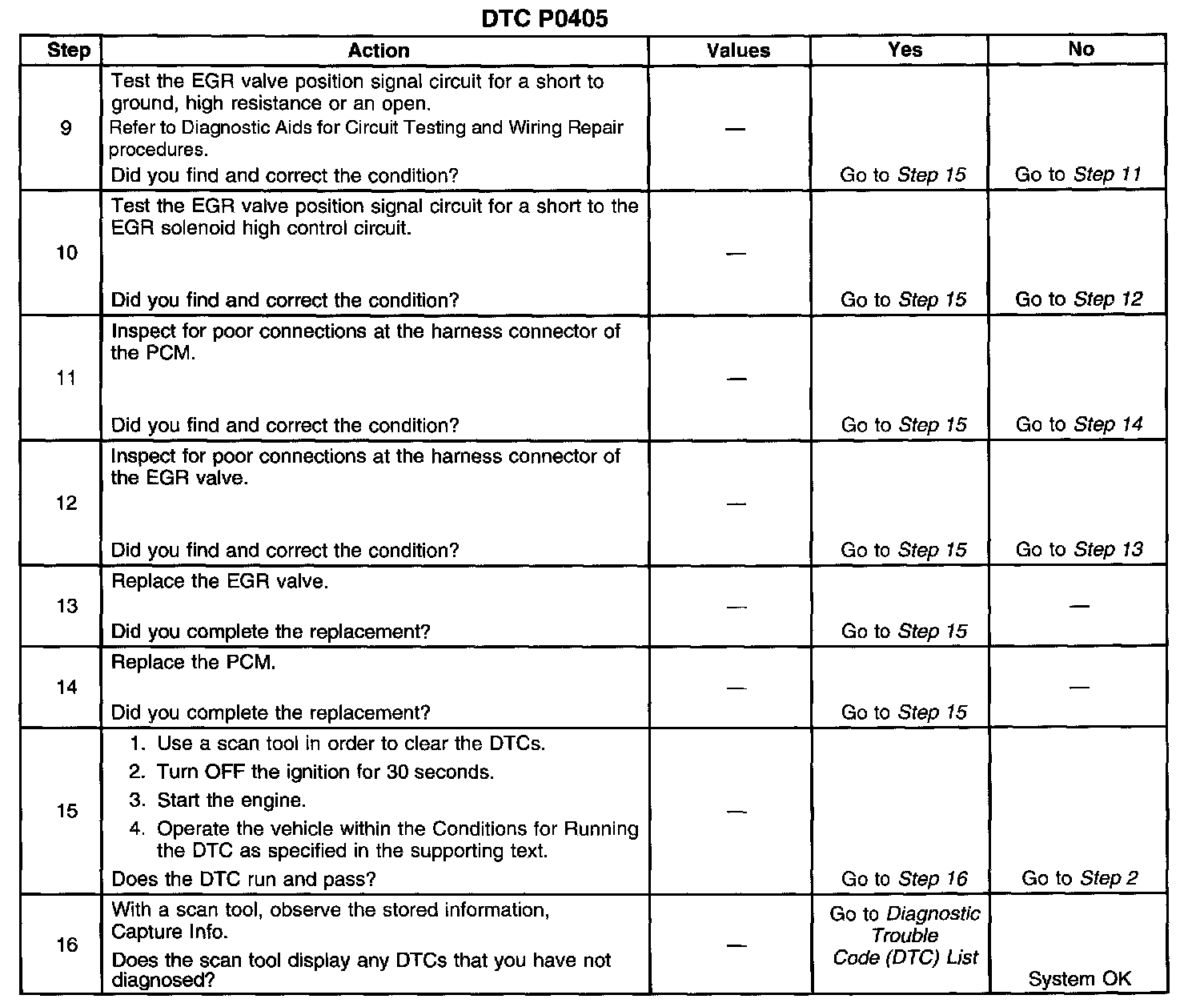 ^ The EGR position sensor voltage is less than 0.14 volts.