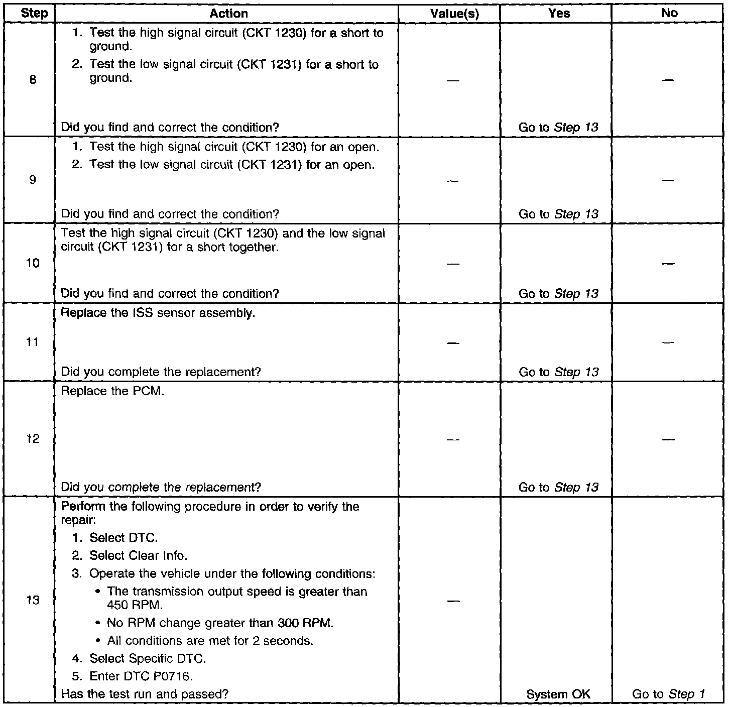 When the PCM detects an unreasonably large change in the input speed, in a very short period of time, then DTC P0716 sets. DTC P0716 is a type C DTC. For California emissions vehicles, DTC P0716 is a type B DTC.