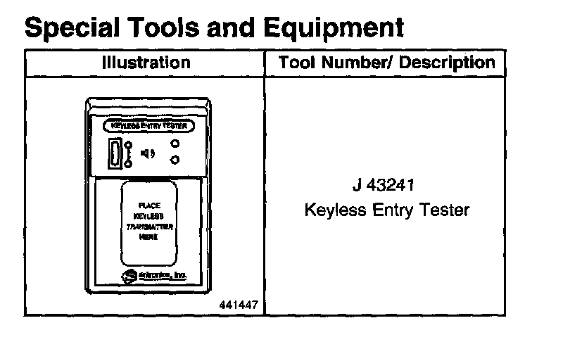 Special Tools And Equipment: