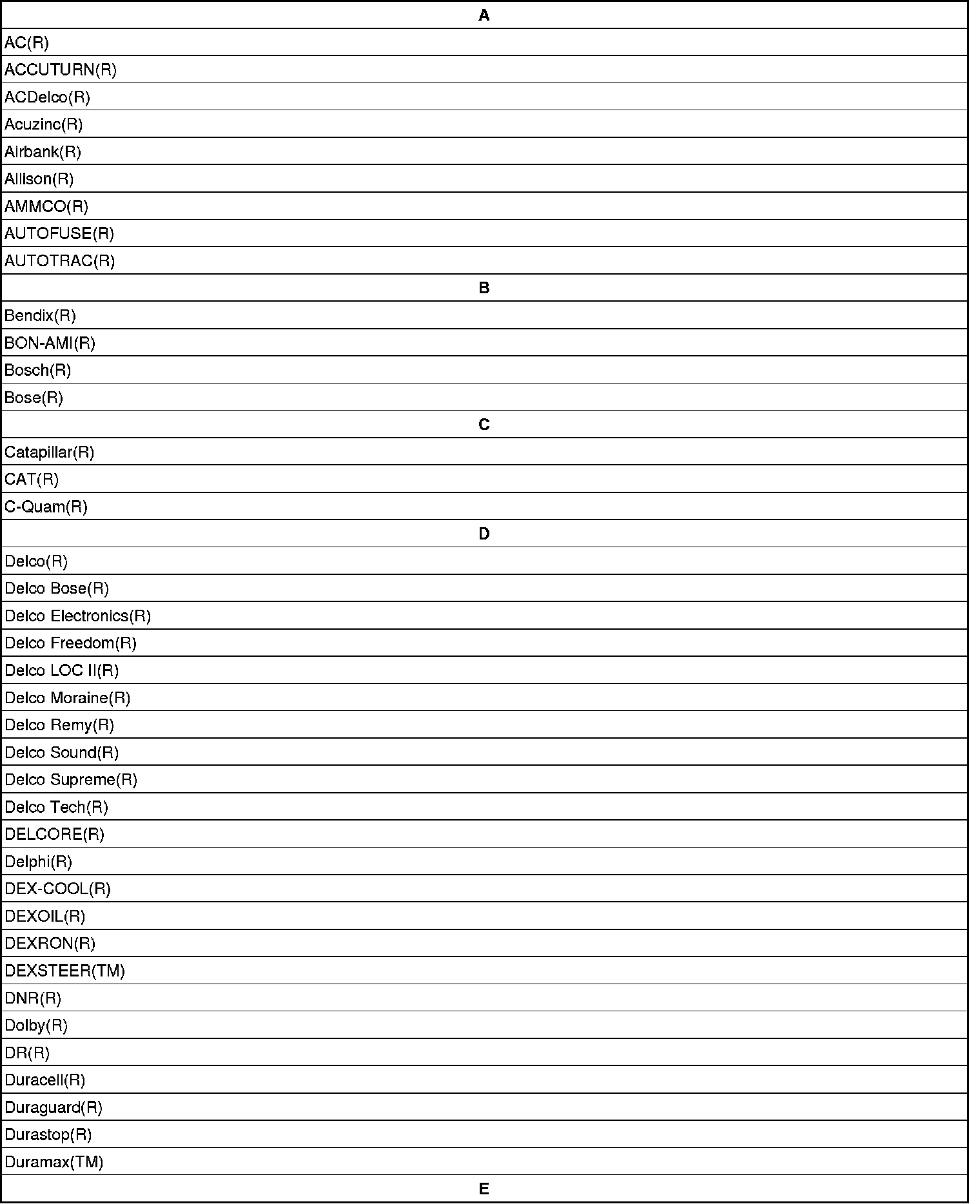 Listed below are Registered Trademarks ((R)) or Non-Registered Trademarks ((TM)) which may appear in this service manual.