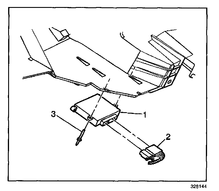 4. Install the VSS buffer module fasteners (3) that retain the VSS buffer module (1) to the instrument panel carrier.
