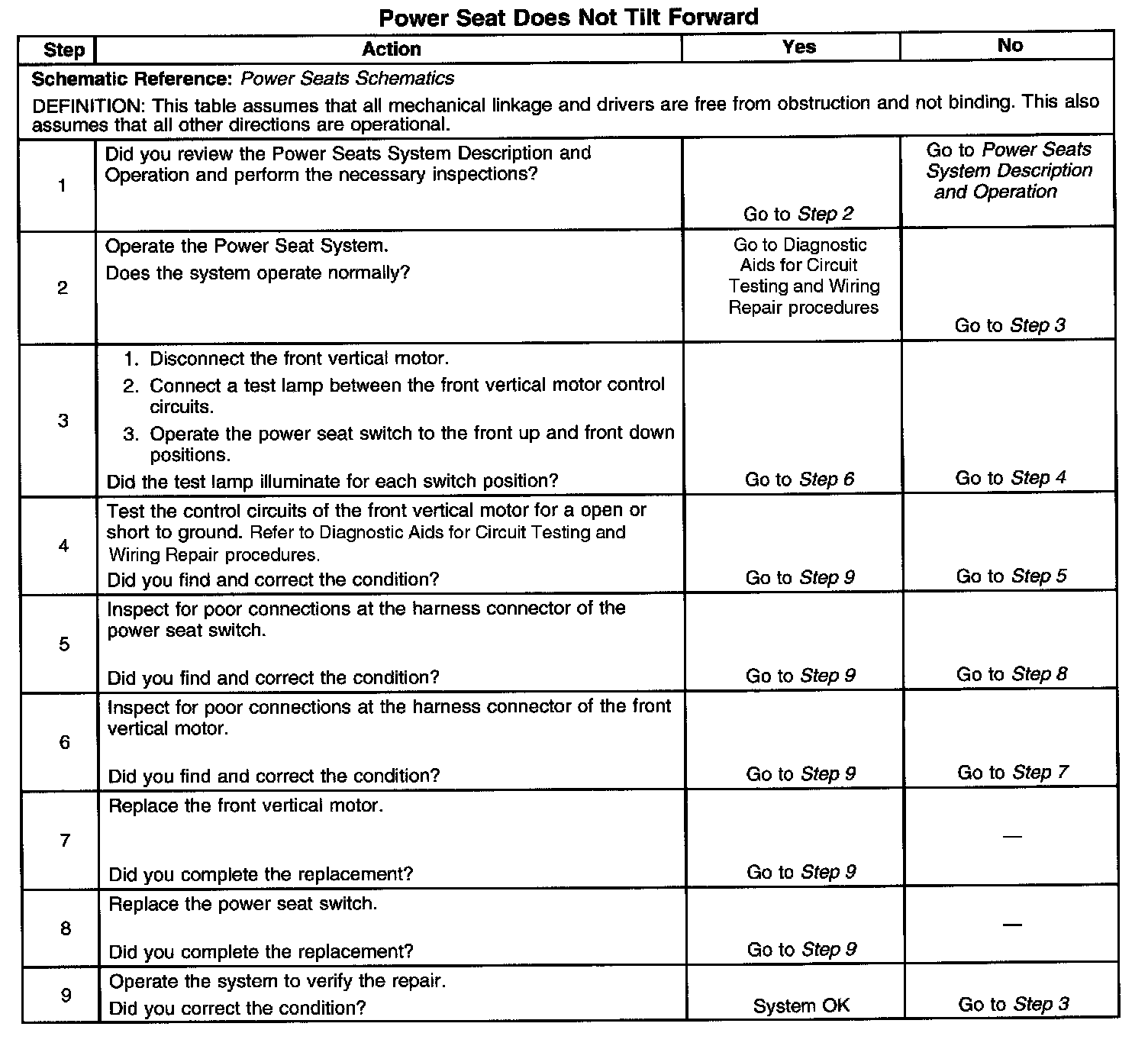 Power Seat Does Not Tilt Forward