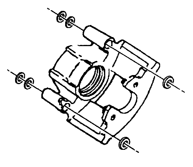 6. Replace the caliper bolts, bushings, and sleeves.