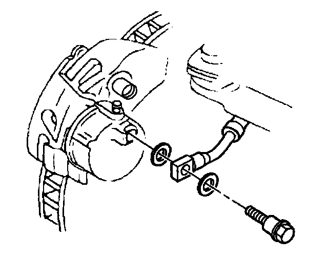 1. Install new gaskets to the front brake hose.