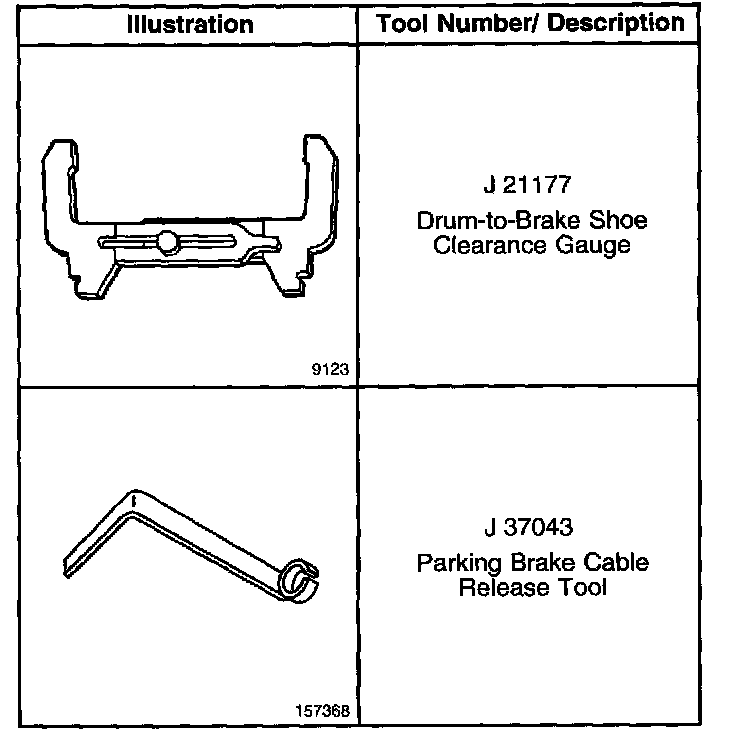 Parking Brake System: Tools and Equipment