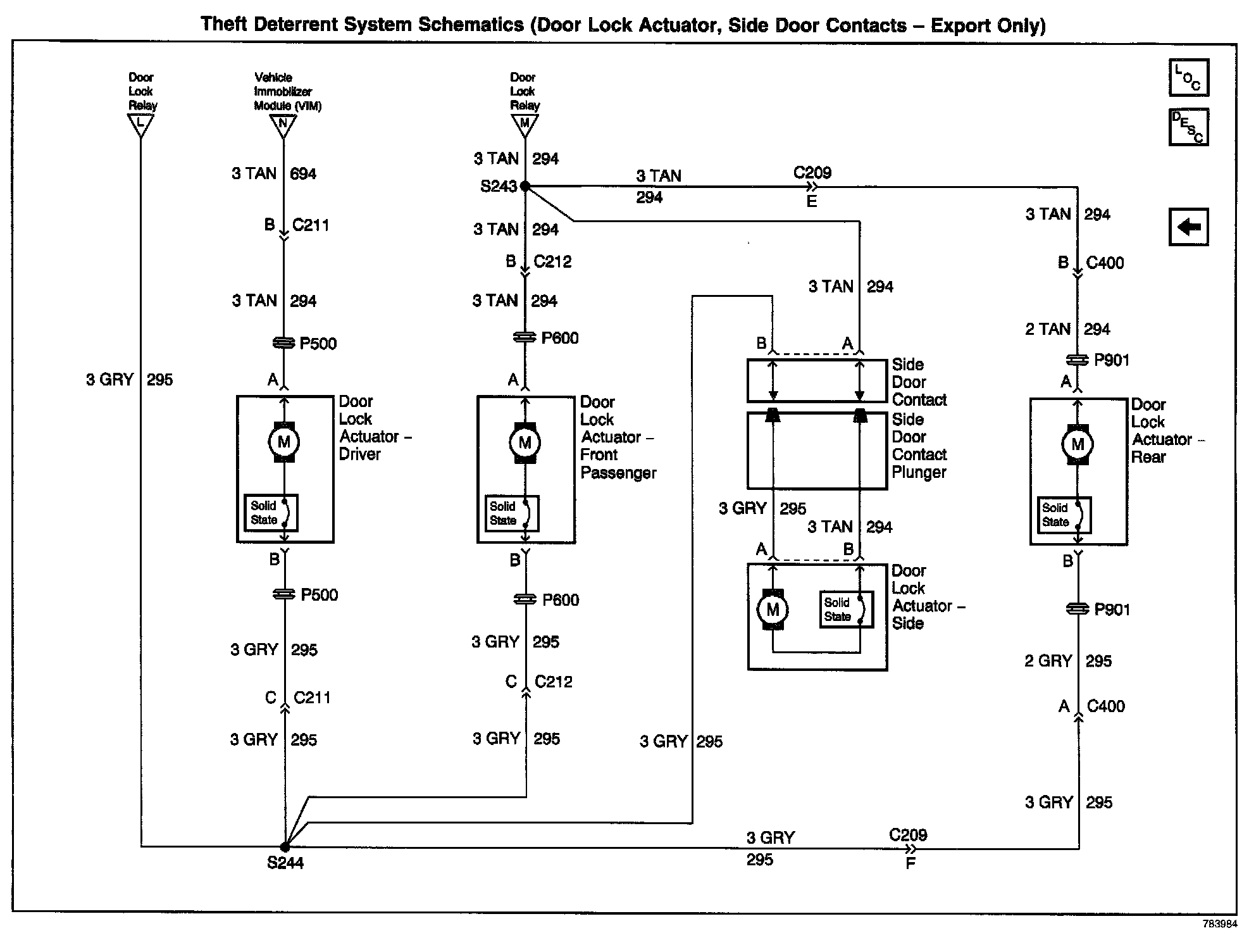 Theft Deterrent System Schematics: Door Lock Actuator, Side Door Contacts - Export Only: