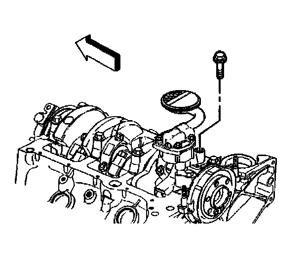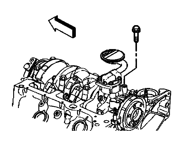 4. Install the Oil pump bolt attaching the Oil pump to the rear crankshaft bearing cap.
