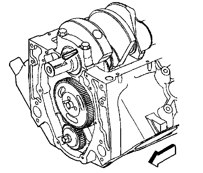 2.1. Rotate the camshaft sprocket (1) counterclockwise until all slack is removed from the camshaft timing chain (2).