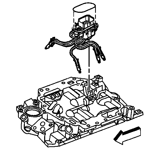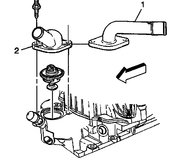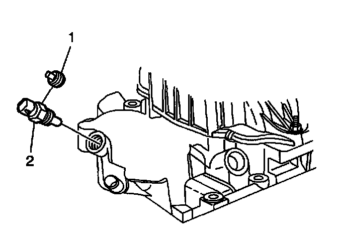 12. Remove the Engine Coolant Temperature (ECT) sensor plug (1) or the ECT sensor (2) from the front of the lower intake manifold, if equipped.