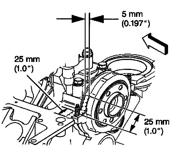 Important: The oil pan alignment must always be flush or forward no more than 0.3 mm (0.011 inch) from the rear face of the engine block.