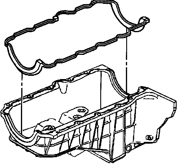 The oil pan gasket and oil pan must be installed and the fasteners tightened while the adhesive is still wet to the touch.