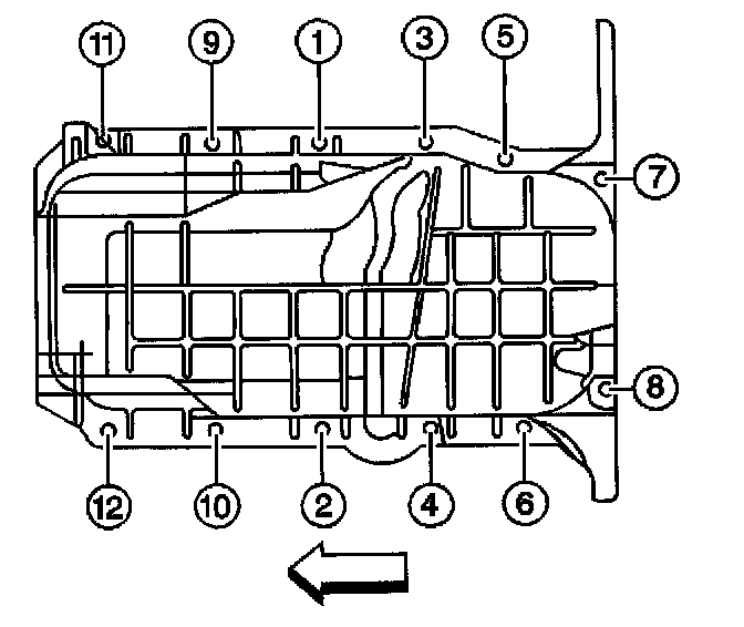 8. Tighten the oil pan bolts and nuts in sequence (1-12).