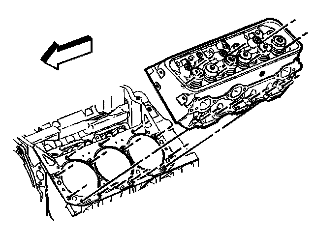 Guide the cylinder head carefully into place over the dowel pins and the cylinder head gasket.