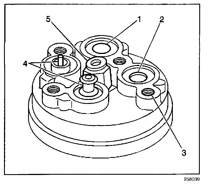2. Lubricate the O-ring of the new pressure relief valve (5) and the O-ring assembly using new 525 viscosity refrigerant oil.