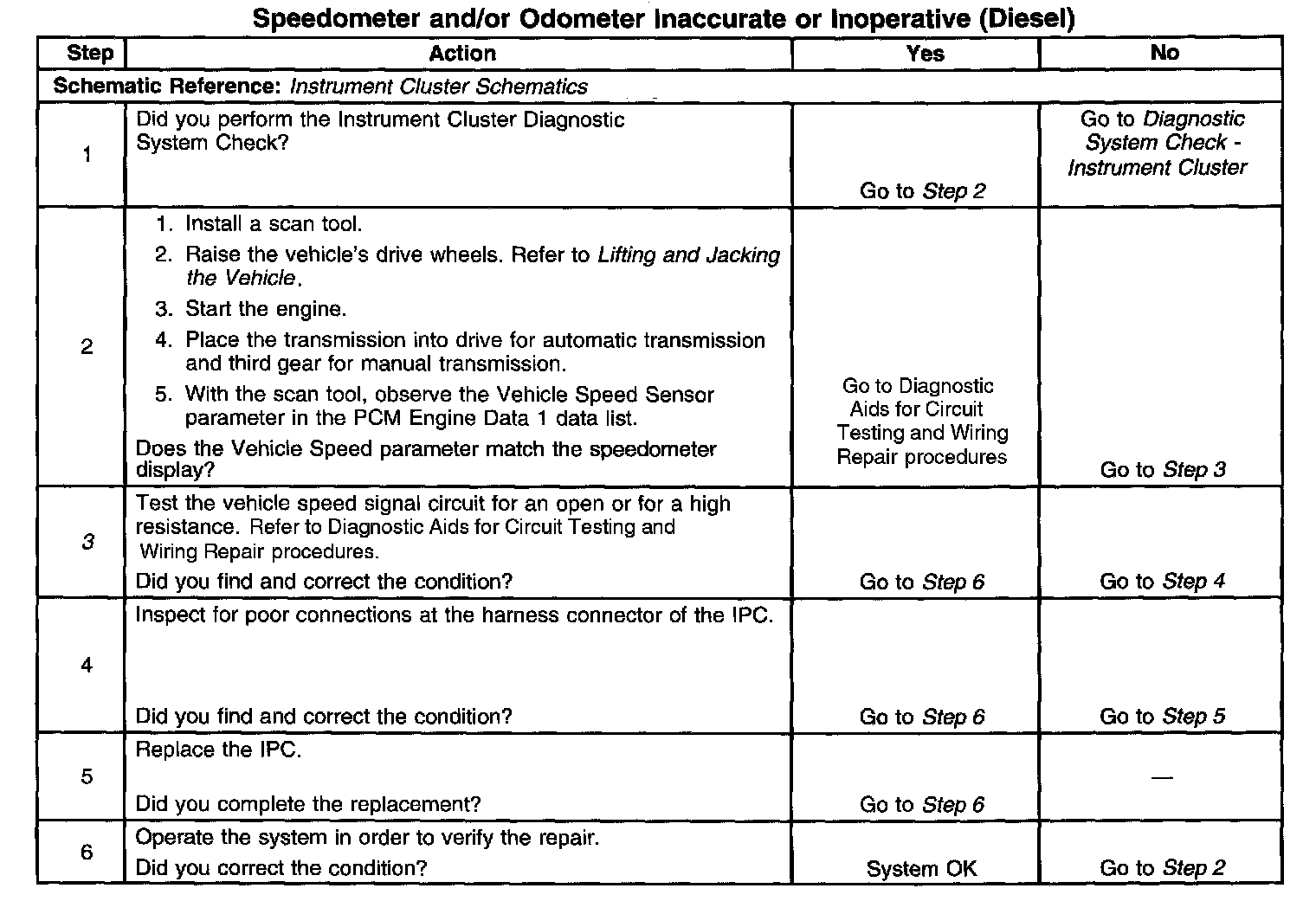 This step tests for the proper vehicle speed signal from the PCM.